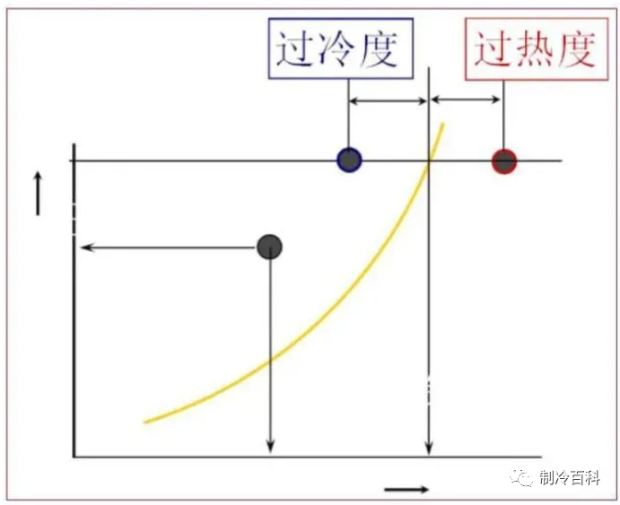 過冷度的定義:冷凝器冷凝壓力對應的飽和液體溫度和冷凝器出口液體實際溫度的差值。
